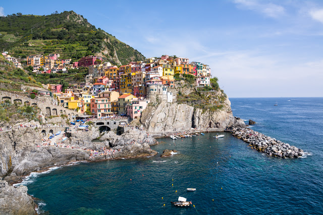 Manarola mi je bila takoj bolj všeč kot Monterosso. Lepše ohranjene stavbe z barvitimi fasadami. Žal je bilo tudi tu zelo veliko ljudi. Tako, da je bil ta izlet vse prej kot romantičen.